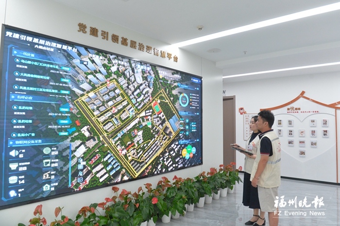 社區(qū)工作人員介紹“社區(qū)黨建引領(lǐng)基層治理智慧平臺(tái)”(福州晚報(bào)記者池遠(yuǎn)攝)