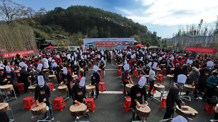 中國綠都·最氧三明四季行——沙縣小吃尋味記啟動儀式,百人打扁肉活動現(xiàn)場(江本健攝)