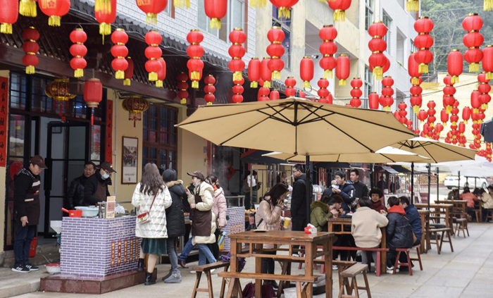 沙縣區(qū)夏茂鎮(zhèn)俞邦村 尋根追味小吃街內(nèi)游客品嘗“沙縣小吃”