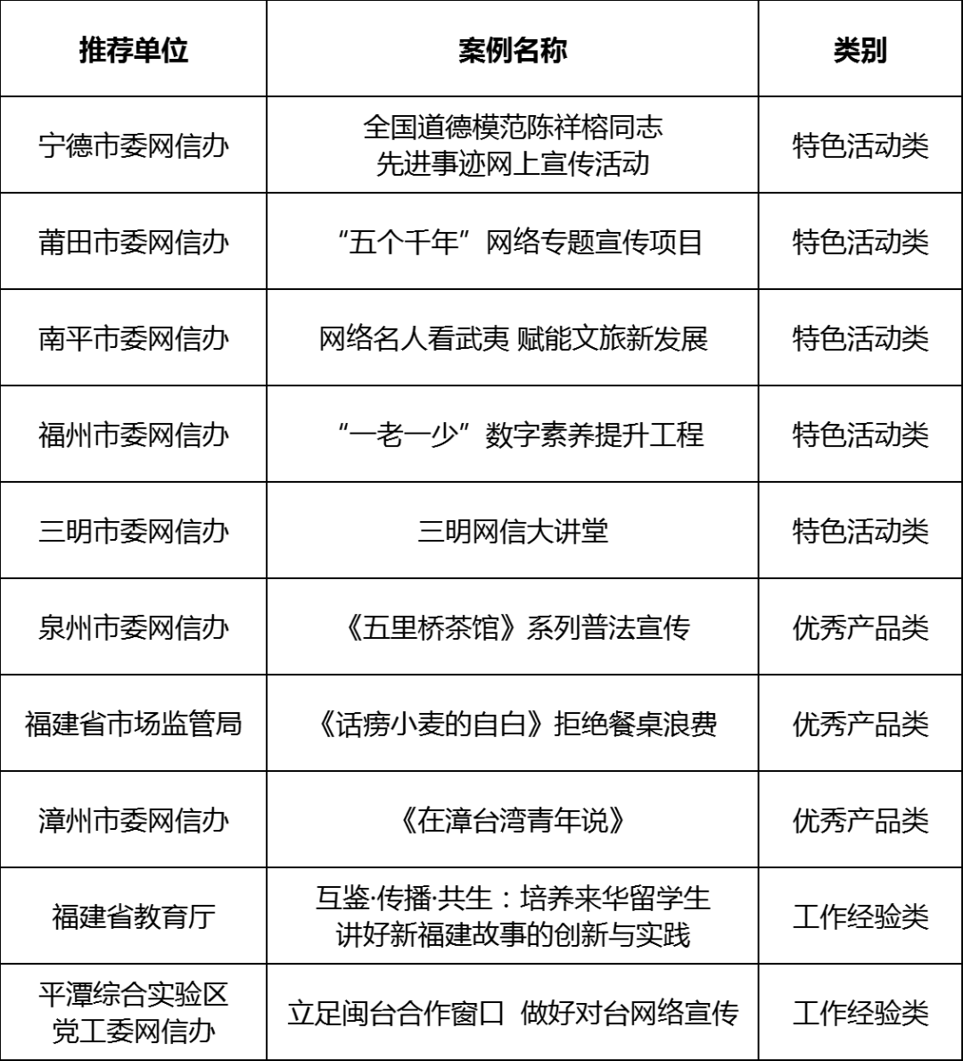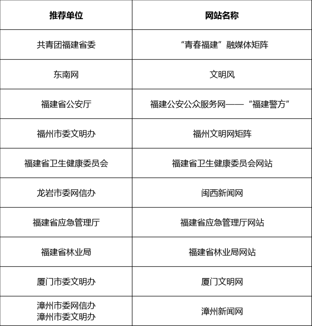 1.福建省網(wǎng)絡(luò)文明建設(shè)“十佳優(yōu)秀案例”公示名單