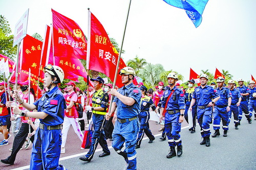 閃耀的“同安紅”,是銀城大地的文明底色。圖為同安區(qū)“920·就愛您”志愿服務(wù)聯(lián)盟的志愿者擺出創(chuàng)意造型,成為文明同安的一個(gè)動(dòng)人鏡頭。(資料圖)