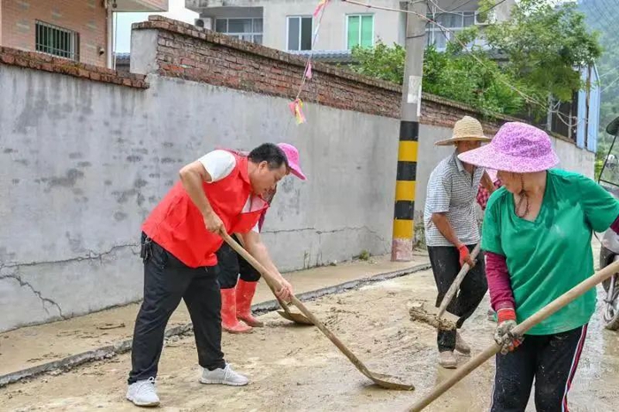 昨日中午,在鑒江鎮(zhèn)鑒江村,村里的黨員干部和村民拿起掃把、抄起鏟子,將堆積的淤泥、雜物一趟一趟運(yùn)出。