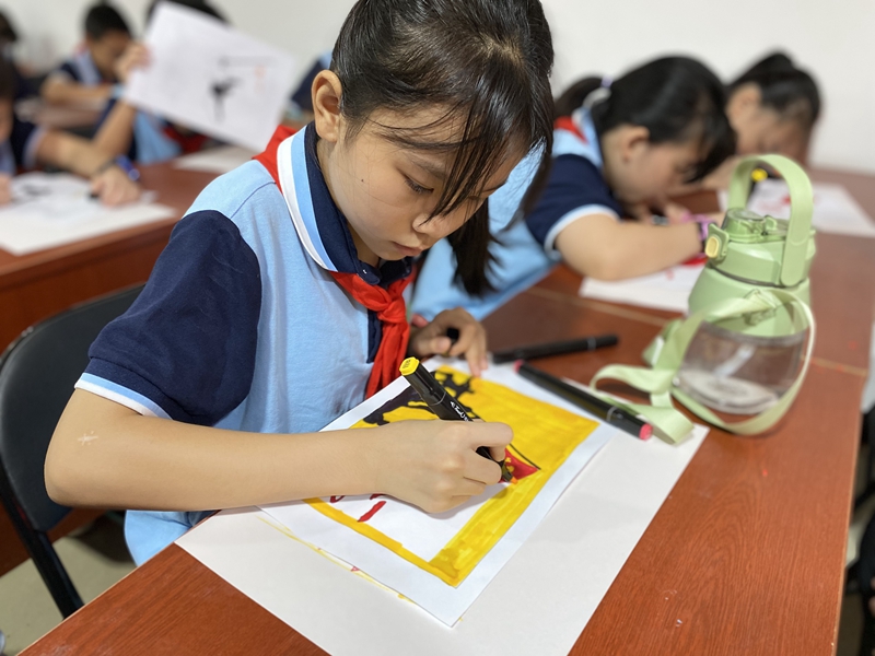 孩子們現(xiàn)場手工繪畫獻禮“八一”(倉山區(qū)城門鎮(zhèn) 供圖)