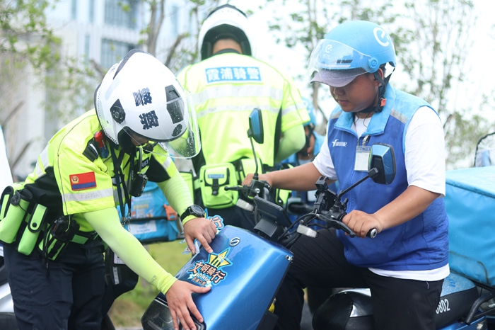 文明風(fēng)8月2日訊 為進(jìn)一步深化文明交通示范創(chuàng)建工作,提升外賣騎手的交通安全意識(shí)、守法觀念,預(yù)防和減少道路交通事故的發(fā)生,7月31日,霞浦交警聯(lián)合美團(tuán)、餓了嗎外賣企業(yè)開(kāi)展“文明騎行 安全配送”為主題的外賣行業(yè)交通安全示范月活動(dòng),全力營(yíng)造安全文明出行的良好氛圍。