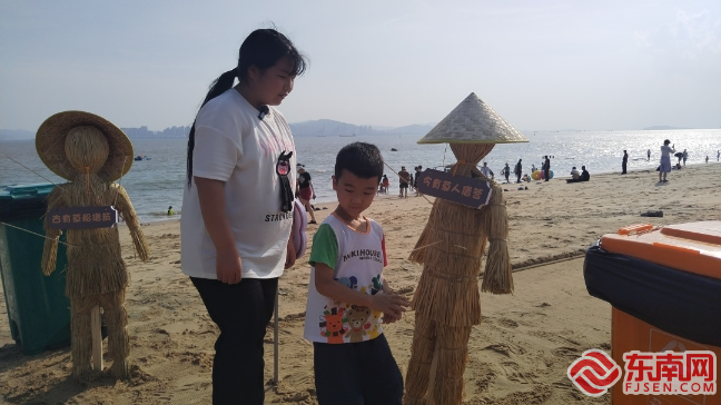 “草人借簽”成為回收沙灘燒烤竹簽的“環(huán)保能手”。思明區(qū)融媒體中心供圖