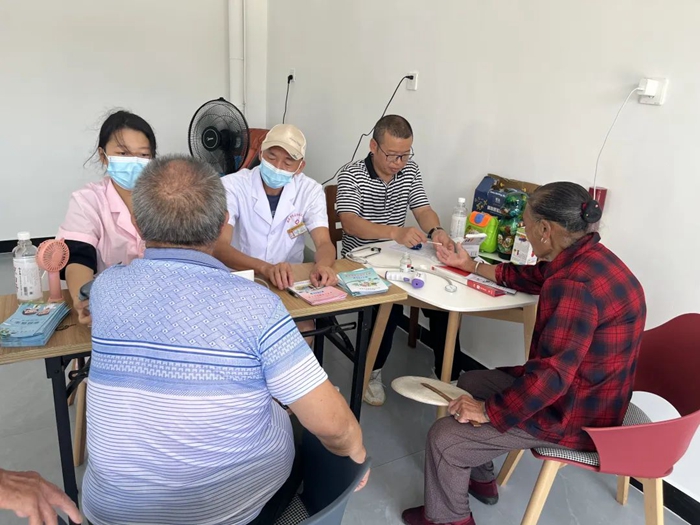 該中心采取“4+N”家庭簽約醫(yī)生模式,鎮(zhèn)衛(wèi)生院醫(yī)生定期為周邊老人開展免費(fèi)血壓監(jiān)測(cè)服務(wù),每月為入住老人開展一次血糖監(jiān)測(cè)服務(wù),為入住對(duì)象開展用藥提醒服務(wù)。