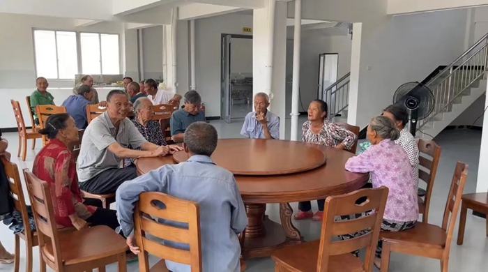 老人們圍著大桌子坐著,說(shuō)著相同的鄉(xiāng)音讓老人們一下子就熟絡(luò)起來(lái)。