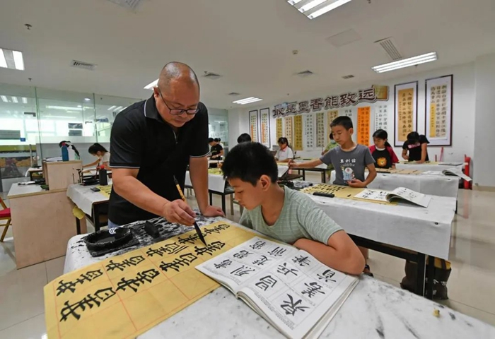 新時(shí)代文明實(shí)踐中心書(shū)法課堂(泉港區(qū)青少年校外活動(dòng)中心供圖)