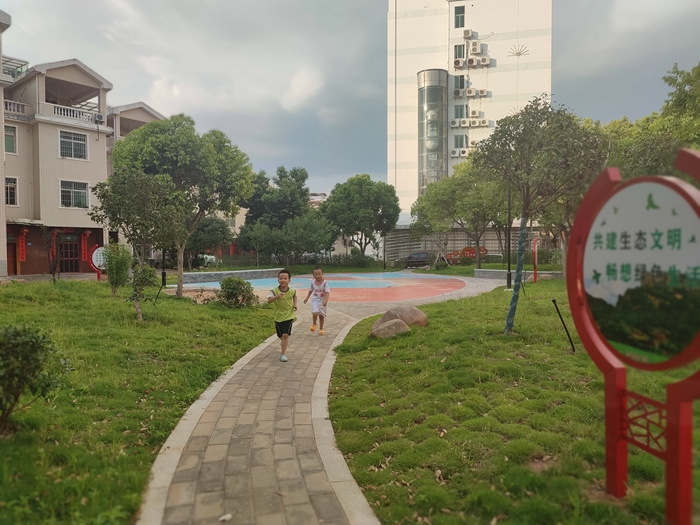 兒童在蓮北社區(qū)“口袋公園嬉戲打鬧”
