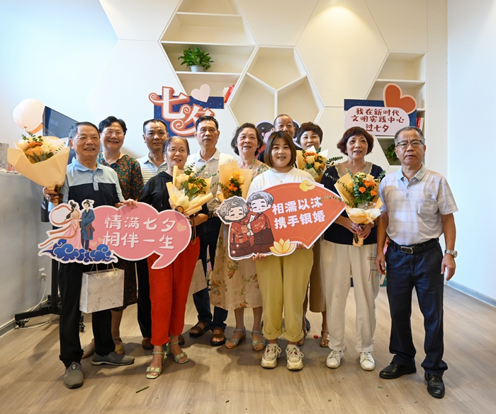文明風(fēng)8月21日訊 婚姻幸福美滿(mǎn),家庭和諧溫馨是每個(gè)人的期盼,在新時(shí)代樹(shù)立良好正確的婚戀觀(guān),形成健康文明的社會(huì)新風(fēng)尚勢(shì)在必行。8月18日上午,為傳承弘揚(yáng)中華民族優(yōu)秀傳統(tǒng)文化,建陽(yáng)區(qū)新時(shí)代文明實(shí)踐中心在七賢社區(qū)開(kāi)展“我在新時(shí)代文明實(shí)踐中心過(guò)七夕——情滿(mǎn)七夕 相伴一生”主題活動(dòng),邀請(qǐng)了轄區(qū)內(nèi)5對(duì)銀婚夫妻,用他們相濡以沫的愛(ài)情故事為新時(shí)代婚戀觀(guān)樹(shù)起“風(fēng)向標(biāo)”。