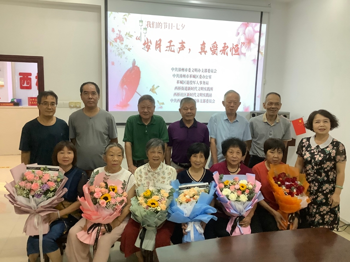 “七夕”鵲橋會,金婚銀婚喜相逢。為進一步傳承和弘揚中華優(yōu)秀傳統(tǒng)文化,在全社會引導樹立正確的婚念觀、家庭觀。8月21日下午,漳州市委文明辦支部委員會、中共漳州市薌城區(qū)委辦公室、薌城區(qū)退役軍人事務(wù)局、西橋街道新時代文明實踐所、西橋社區(qū)新時代文明實踐站、中共西橋社區(qū)離退休支部委員會聯(lián)合舉辦“歲月無聲,真愛永恒”七夕活動在西橋社區(qū)舉行,活動邀請了轄區(qū)內(nèi)的老年夫妻來參與活動。