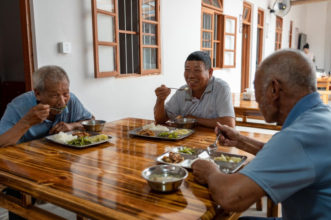 宣和鎮(zhèn)培田村老人在食堂中享用可口飯菜。江云華 攝