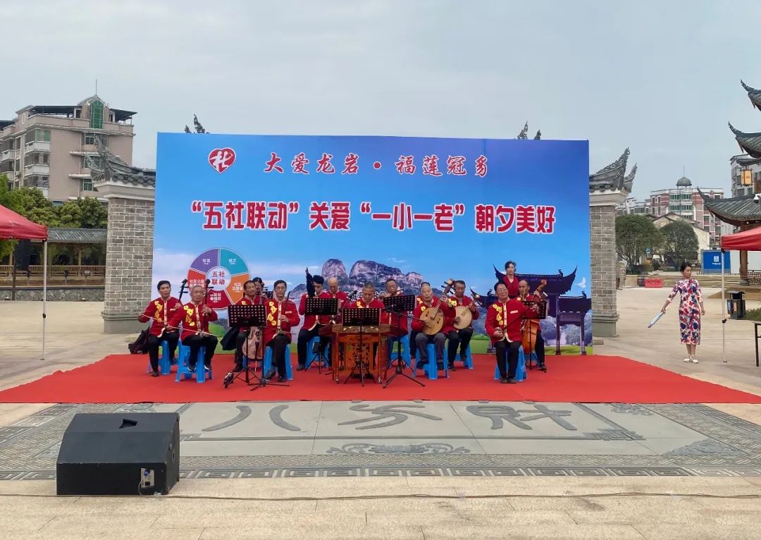 連城“推進(jìn)‘五社聯(lián)動’關(guān)愛‘一小一老’”主題社會工作宣傳活動上,十番樂隊(duì)為群眾帶來精彩表演。江鈺婷 李偉帥 攝