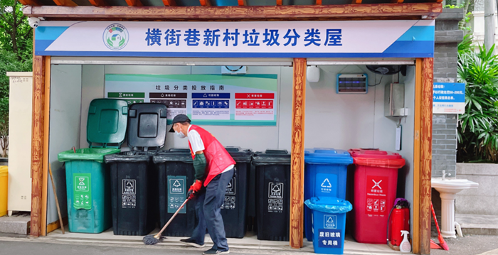 垃圾分類員在垃圾屋前進(jìn)行清理工作(臺(tái)江區(qū)委文明辦供圖)