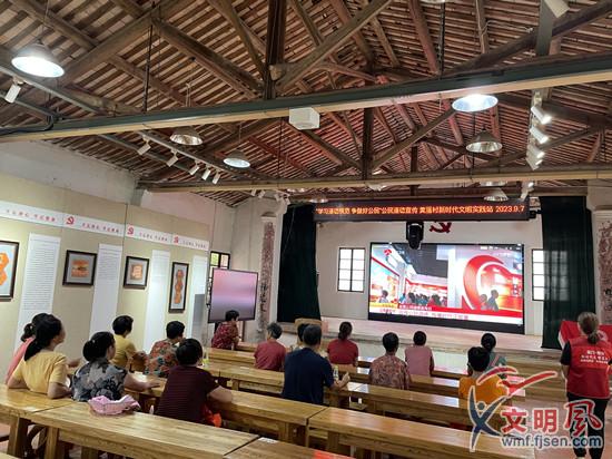 大家觀看道德模范和身邊好人故事巡講宣傳視頻(黃厝村新時代文明實踐站 供圖)