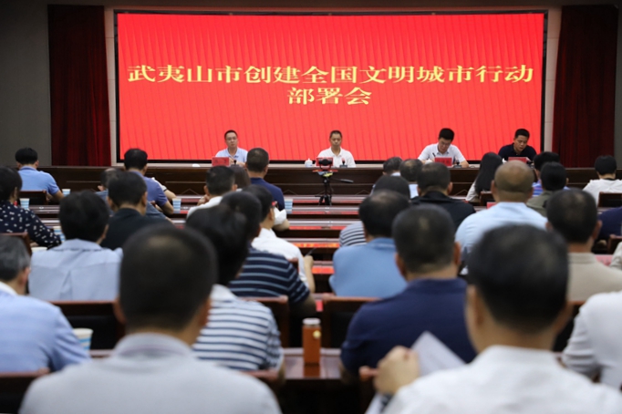 文明風(fēng)9月11日訊 9月8日,武夷山市召開(kāi)創(chuàng)建全國(guó)文明城市行動(dòng)部署會(huì),全市上下統(tǒng)一思想,形成共識(shí),齊心協(xié)力,持續(xù)常態(tài)化,高標(biāo)準(zhǔn),高質(zhì)量推進(jìn)全國(guó)文明城市創(chuàng)建;動(dòng)員全市人民以主人翁的責(zé)任感、使命感,關(guān)心、支持、參與文明城市建設(shè),共創(chuàng)優(yōu)美環(huán)境、共樹(shù)文明形象。