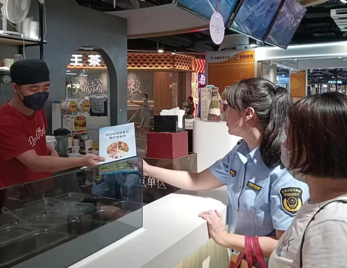 餐飲行業(yè)是體現(xiàn)城市文明形象的一個重要窗口,臺江區(qū)以轄區(qū)中小餐館為重點,從整體環(huán)境、從業(yè)人員資格、投訴機制、消毒設備情況、消防通道通暢、“門前三包”等工作標準入手,加強日常監(jiān)督,并邀請廣大消費者通過“隨手拍”等形式,多渠道監(jiān)督,督促各賓館飯店、中小餐館等餐飲服務單位落實整改,提升水平。同時,加大“文明餐桌”宣傳力度,大力推進“光盤行動”,要求餐飲行業(yè)全面落實適量點餐提醒要求,并從文明用語、工作著裝、“公勺公筷”、文明宣傳、垃圾分類等方面進行指導,提升餐飲從業(yè)者文明經營、文明服務水平,營造和諧舒適的用餐環(huán)境。