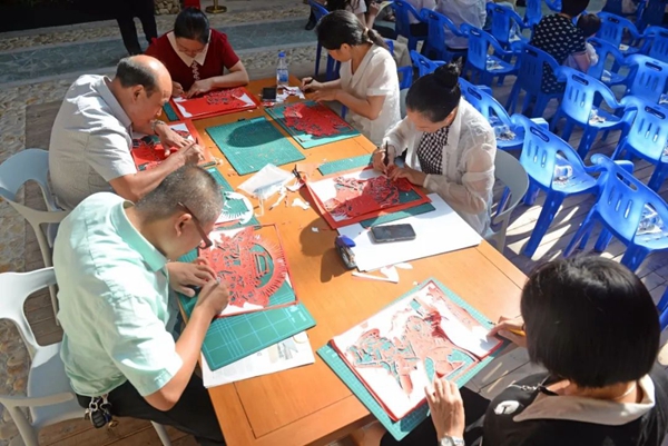 市民群眾現(xiàn)場體驗剪刻紙 吳有森 攝