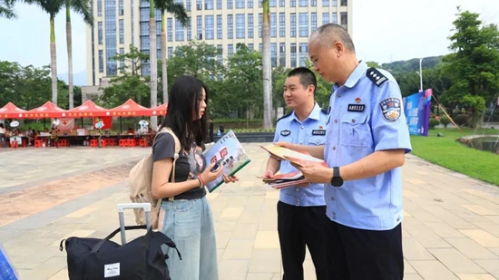 活動現(xiàn)場,工作人員通過發(fā)放宣傳單、擺放宣傳展板等形式,向現(xiàn)場老師、學生及家長宣傳反詐防騙和見義勇為知識,宣傳見義勇為英雄事跡,普及見義勇為表彰、獎勵、保障等方面的法律知識和政策規(guī)定。