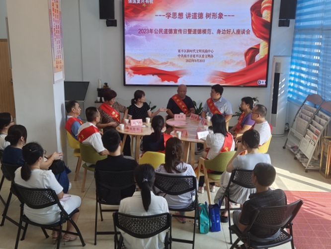 文明風(fēng)9月22日訊 2023年9月20日是第 21 個(gè)公民道德宣傳日,當(dāng)天下午,由延平區(qū)新時(shí)代文明實(shí)踐中心、區(qū)委文明辦主辦的“學(xué)思想、講道德、樹形象——公民道德宣傳日暨道德模范、‘身邊好人’座談會(huì)”在延平區(qū)文明實(shí)踐中心舉行,活動(dòng)現(xiàn)場(chǎng)邀請(qǐng)了9名各級(jí)各類道德模范、“身邊好人”和區(qū)委宣傳部、區(qū)公安、區(qū)市場(chǎng)監(jiān)管等單位代表參加。