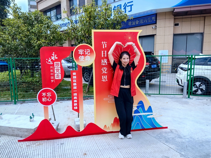 在黨建宣傳“節(jié)日感黨恩”打卡區(qū)合影(倉(cāng)山區(qū)委文明辦 供圖)