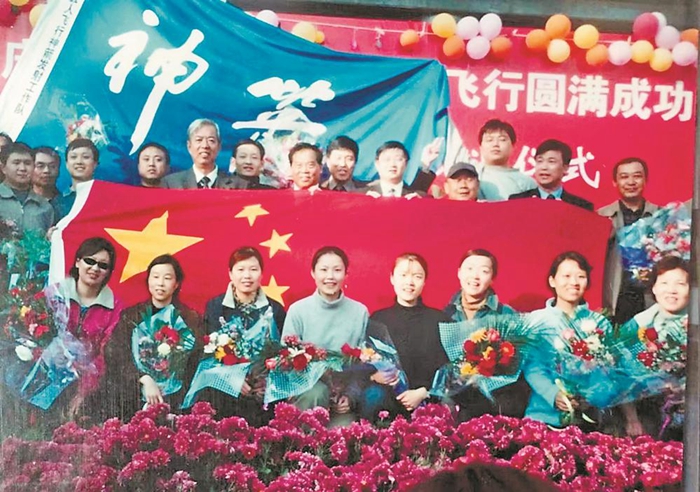 神舟五號發(fā)射圓滿成功,飛天夢圓,神箭團隊合影慶祝。(黃春平供圖)