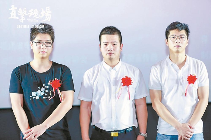 電影《直擊現(xiàn)場》首發(fā)時,三兄弟登臺。(資料圖片)