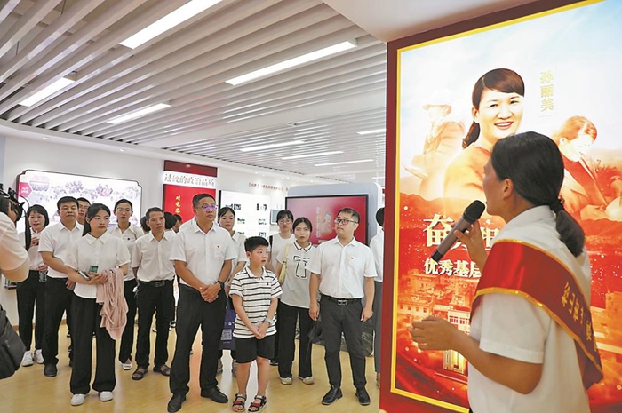 孫麗美先進事跡展示館內(nèi),干部群眾重溫楷模事跡。溫濤霖 攝