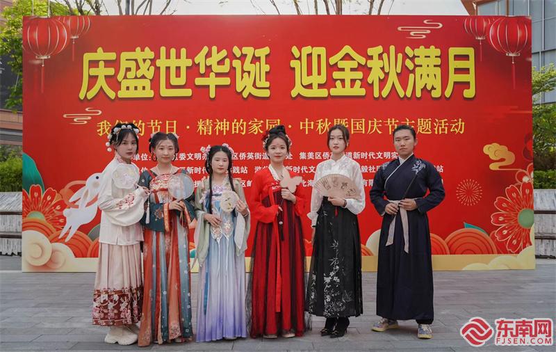 僑英街道我們的節(jié)日·精神的家園·中秋暨國(guó)慶主題活動(dòng)現(xiàn)場(chǎng),志愿者身著漢服(集美區(qū)新時(shí)代文明實(shí)踐中心供圖)