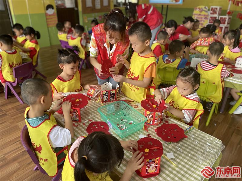 田頭村新時(shí)代文明實(shí)踐站走進(jìn)幼兒園開(kāi)展中秋節(jié)主題活動(dòng),組織孩子們制作花燈。(集美區(qū)新時(shí)代文明實(shí)踐中心供圖)