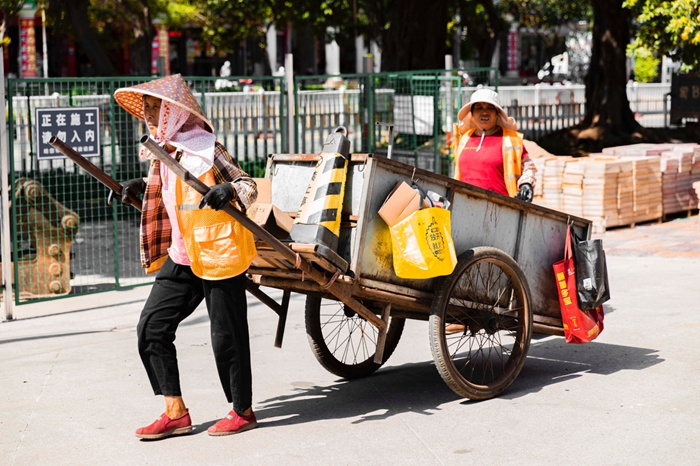 環(huán)衛(wèi)工人清理路面垃圾(泉港區(qū)委文明辦供圖)
