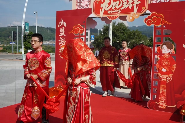 順昌縣8對(duì)新人身著華服參加了“山盟海誓 愛在順昌”——順昌縣首屆大型戶外集體頒證活動(dòng)(圖:李漪澄)