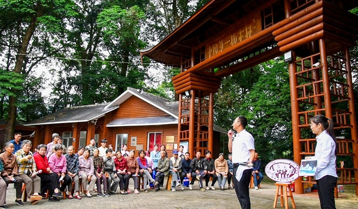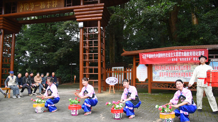 政和縣“板凳微宣講”理論進(jìn)基層活動(dòng)首站在東平鎮(zhèn)鳳頭村中國第一楠木林開展。郭斯杰 攝