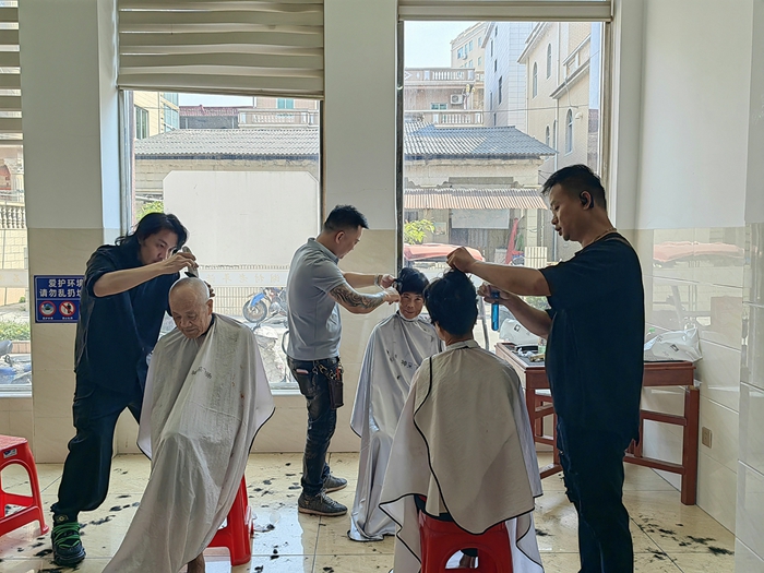 主題活動中,理發(fā)志愿者一邊親切地和老人交流溝通,一邊根據(jù)老人的需求和喜好修剪適合他們的發(fā)型。老人們剪完頭發(fā)臉上都洋溢著幸福的笑容,連聲稱贊義剪活動服務(wù)到了老年人的心坎上,切實解決了老年人生活中的實際困難。