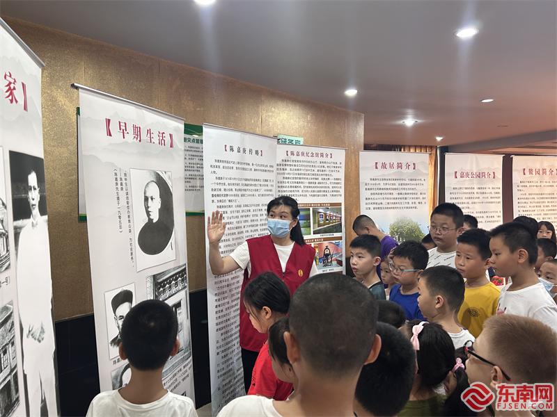 志愿者為青少年兒童講述陳嘉庚先生的生平事跡。(集美區(qū)委文明辦供圖)