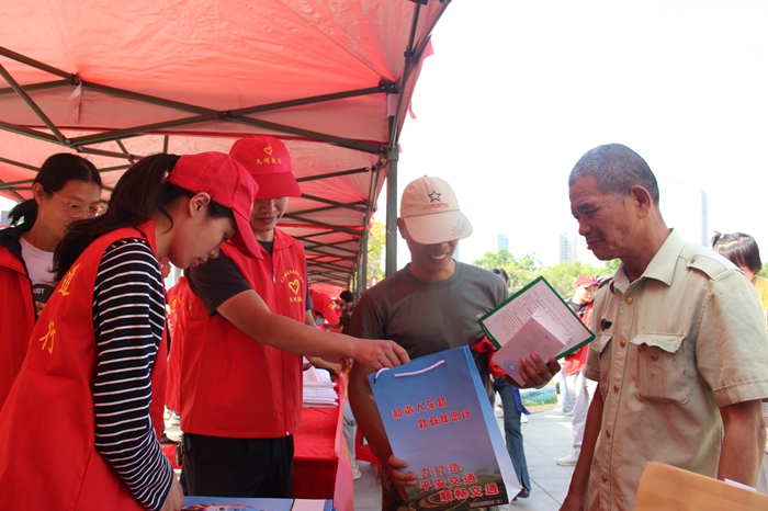 現(xiàn)場分發(fā)宣傳品(泉港區(qū)委文明辦供圖)