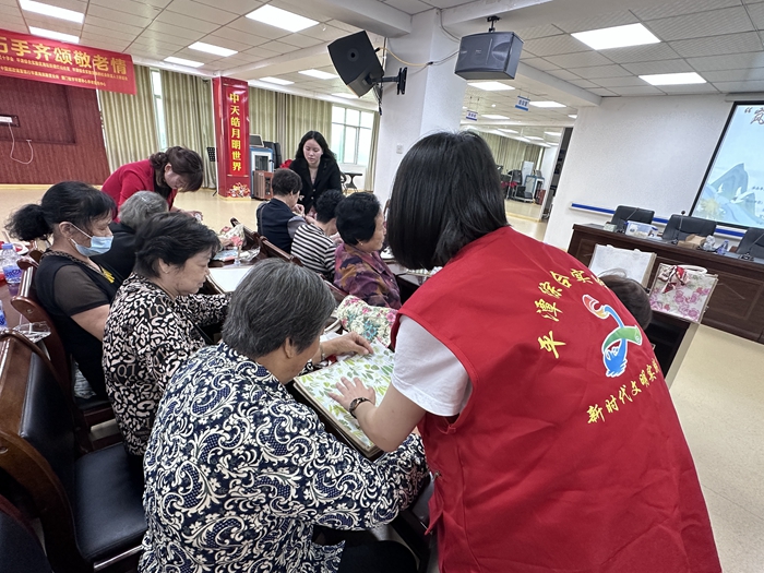 志愿者和老年人一起進(jìn)行手工制作。平潭新時(shí)代文明實(shí)踐中心 供圖