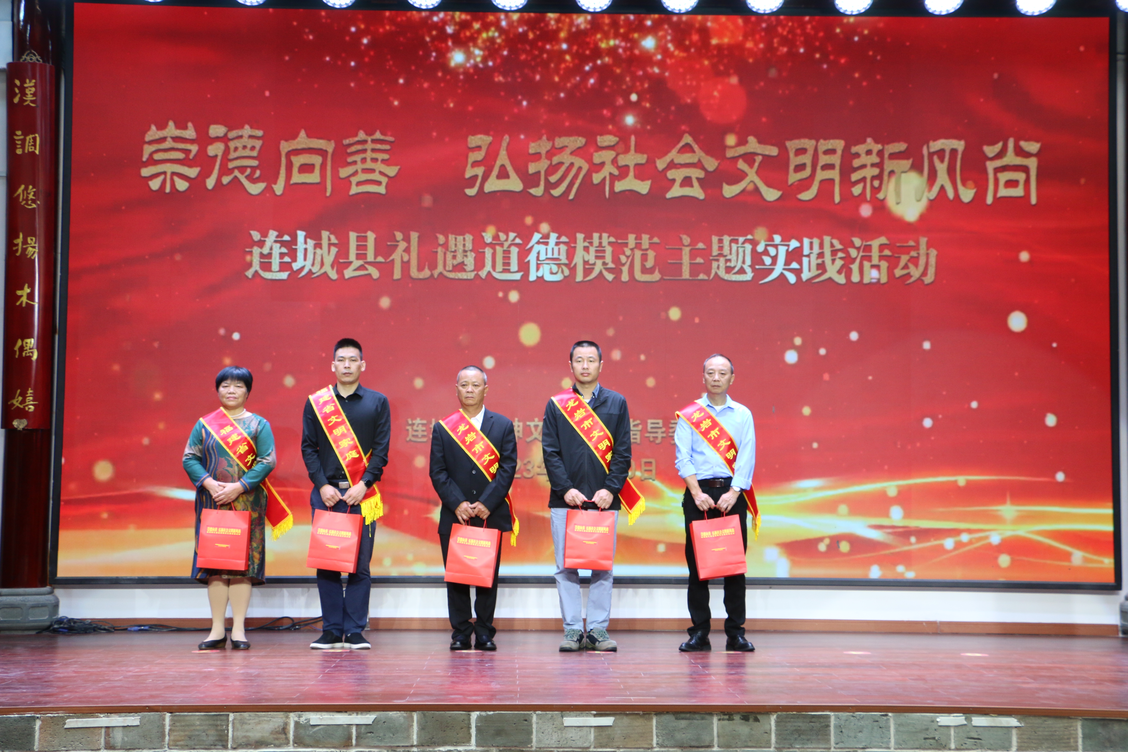 當(dāng)天,連城縣領(lǐng)導(dǎo)為先進(jìn)模范授予志愿服務(wù)裝備。大家還共同觀看了客家十番音樂(lè)《移風(fēng)易俗譜新篇》,舞蹈《入蓮間》,木偶書(shū)法《文明傳?!?、木偶插花、木偶泡茶,歌伴舞《國(guó)家》等節(jié)目,在精彩絕倫的表演當(dāng)中,共同感受見(jiàn)賢思齊、崇德向善的社會(huì)文明新風(fēng)尚。