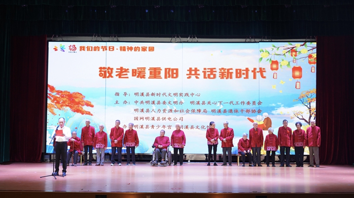 文明風(fēng)10月24日訊 為弘揚(yáng)中華民族敬老愛(ài)老的傳統(tǒng)美德,積極營(yíng)造全社會(huì)關(guān)注老年人的良好氛圍,10月22日下午,由明溪縣新時(shí)代文明實(shí)踐中心指導(dǎo),明溪縣委文明辦、縣關(guān)工委、縣人社局等單位主辦,縣青少年宮、縣文化館承辦的2023年“我們的節(jié)日·精神的家園”——“敬老暖重陽(yáng)共話新時(shí)代”重陽(yáng)節(jié)主題文藝匯演活動(dòng)在明溪縣宣傳文化中心開(kāi)展。