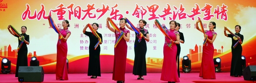 重陽(yáng)節(jié)活動(dòng)現(xiàn)場(chǎng)文藝節(jié)目精彩紛呈。(中洲社區(qū)供圖)