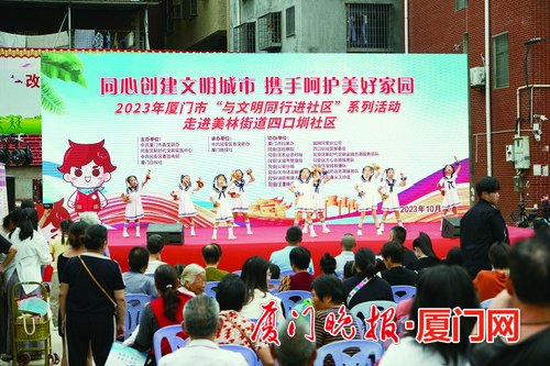 文藝匯演傳新風(fēng)、有獎問答掀熱潮、文明集市聚人氣……日前,2023年廈門市“與文明同行”系列活動在同安區(qū)的首站活動來到美林街道四口圳社區(qū),活動現(xiàn)場熱鬧非凡,不僅有精彩紛呈的演出,還有文明知識互動問答,豐富多樣的志愿服務(wù),吸引了眾多居民駐足參與。