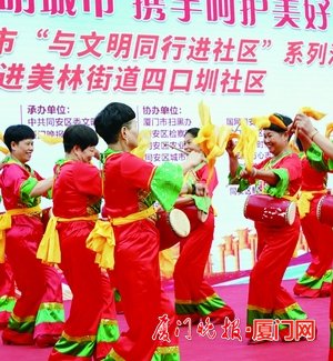 “當(dāng)前廈門市正在爭創(chuàng)第幾屆全國文明城市?”“您身邊的志愿服務(wù)活動氛圍是否濃厚?”現(xiàn)場,一輪又一輪的創(chuàng)建全國文明城市知識互動問答穿插在文藝表演中,掀起了一次又一次活動熱潮。在一問一答中,居民們不僅獲得了精美禮品,還學(xué)到了文明知識,提高了他們對創(chuàng)建全國文明城市的知曉率、支持率、參與率和滿意率。