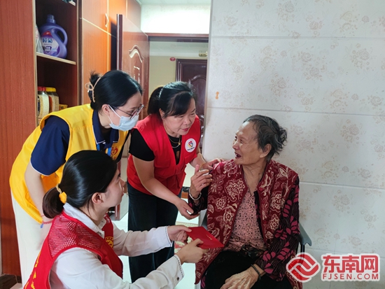 敬老孝老志愿者進(jìn)居入戶(hù),慰問(wèn)老人。浮橋街道 供圖