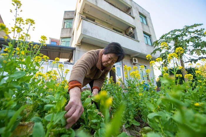 村民在打理自家庭院內(nèi)的“微田園”。林雙偉 攝