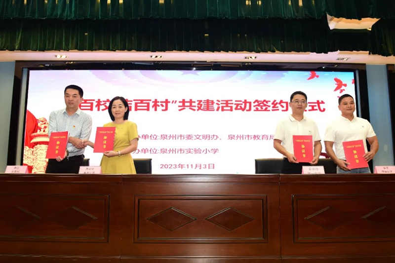 泉州第一中學(xué)與豐澤區(qū)蟳埔社區(qū)、晉光小學(xué)與洛江區(qū)馬甲鎮(zhèn)永安村現(xiàn)場(chǎng)簽訂“百校結(jié)百村”協(xié)議書。東南網(wǎng)記者 林婕 攝
