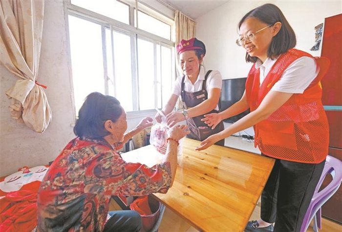“這幾年,每逢重陽節(jié)社區(qū)都會在長者食堂舉辦敬老宴。社區(qū)一些年輕人知道了,都自愿過來當(dāng)志愿者。我們還依托長者食堂積極開展‘健康進(jìn)社區(qū)’‘情暖夕陽紅’等公益行動,為老年人提供精準(zhǔn)、高效的多樣化貼心服務(wù)。”福煉社區(qū)居委會工作人員柯梅英說。