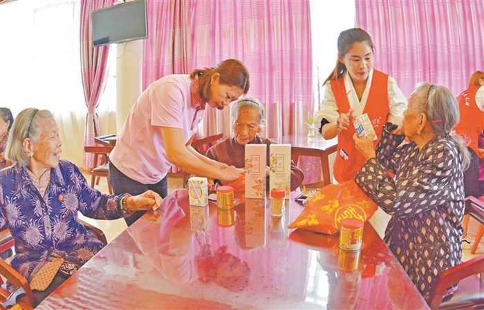 在泉港中心養(yǎng)老院,老人們經(jīng)常收到社會愛心人士送來的禮物。(林弘梫 攝)