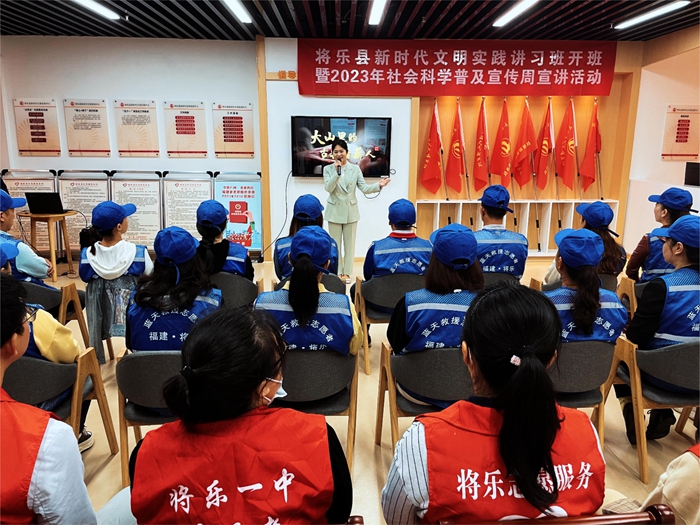 文明風(fēng)11月14日訊 11月8日,將樂縣新時代文明實(shí)踐講習(xí)班開班暨2023年社會科學(xué)普及宣傳周宣講活動舉行,來自各個優(yōu)秀志愿服務(wù)團(tuán)隊(duì)的50多位志愿者代表聚集在將樂縣新時代文明實(shí)踐中心參加活動。
