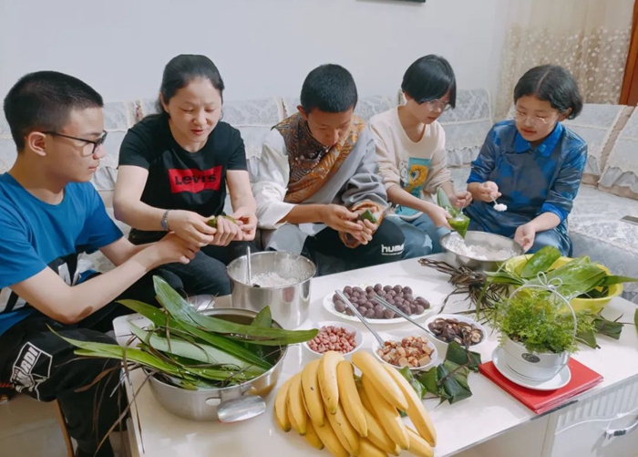 西藏班學(xué)生在三明學(xué)生家里包粽子