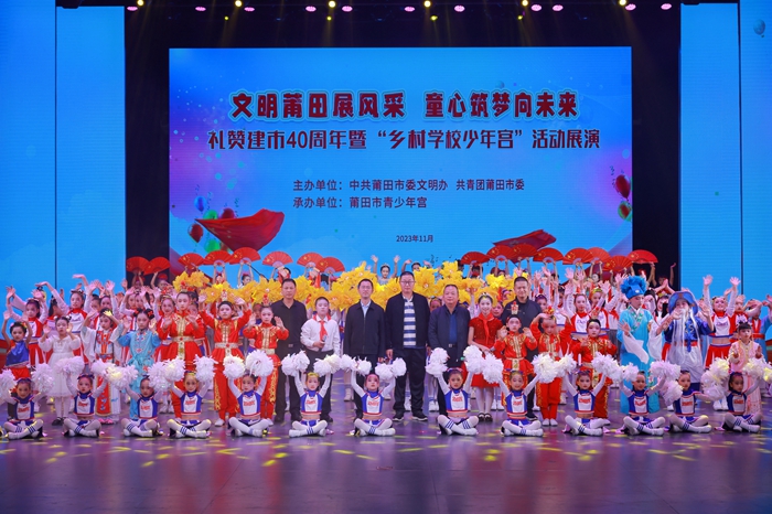 為慶祝莆田建市40周年,大力宣傳莆田城市發(fā)展和人民生活40年來取得的巨大變化,營造熱烈、喜慶的良好氛圍,充分展示“鄉(xiāng)村學(xué)校少年宮”活動風(fēng)采,推動“鄉(xiāng)村學(xué)校少年宮”活動常態(tài)長效,11月26日下午,由莆田市委文明辦、共青團(tuán)莆田市委主辦,莆田市青少年宮承辦的“文明莆田展風(fēng)采 童心筑夢向未來”——禮贊建市40周年暨“鄉(xiāng)村學(xué)校少年宮”活動展演在莆田市青少年宮舉行。